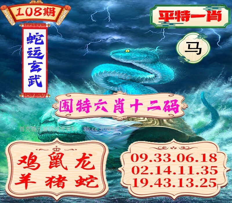 108期解蛇运玄武图: 六肖:鸡鼠龙羊猪蛇 十二码:09.33.06.18.02.14.11.35.19.43.13.25
